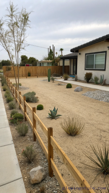 A desert-style fence adds privacy and structure. It defines the front yard clearly. The design feels complete.