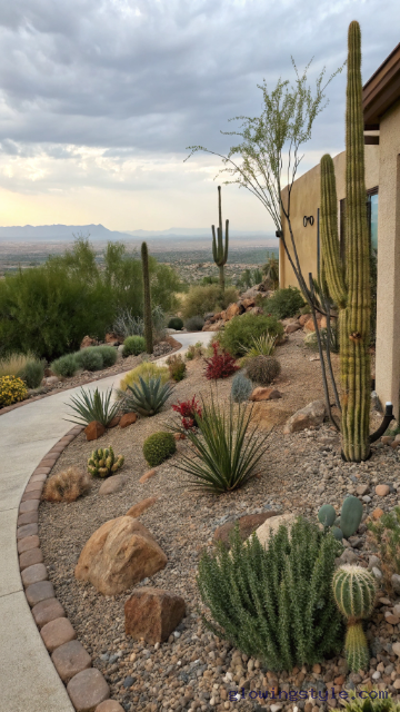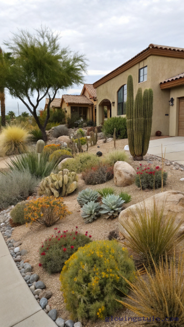 Front yard desert landscaping ideas focus on low-water designs. They use drought-tolerant plants and simple layouts.