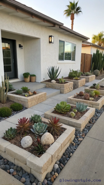 Use materials like stone or wood for the planters. Match them with your home style. This keeps the design cohesive.