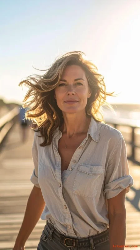 Mid-length waves look relaxed and flattering. Subtle layers keep waves from clumping together. The style feels youthful without trying too hard.