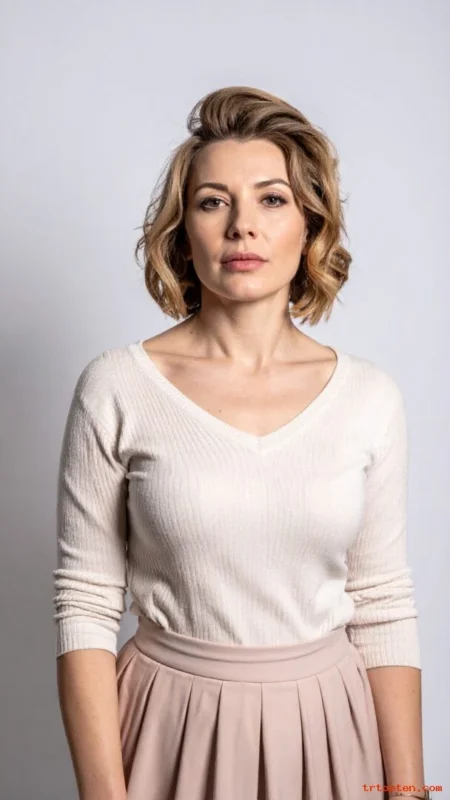 A rounded shape helps curls look balanced. It prevents the “pyramid” look that can happen with curls. The length stays manageable and still feels feminine.