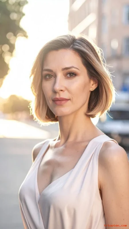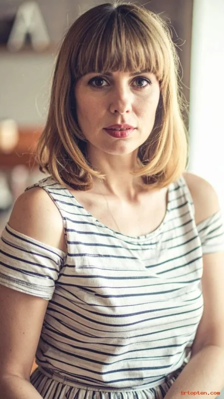 A French bob feels playful and chic. The soft fringe draws attention to the eyes. It also helps disguise forehead lines in a natural way.