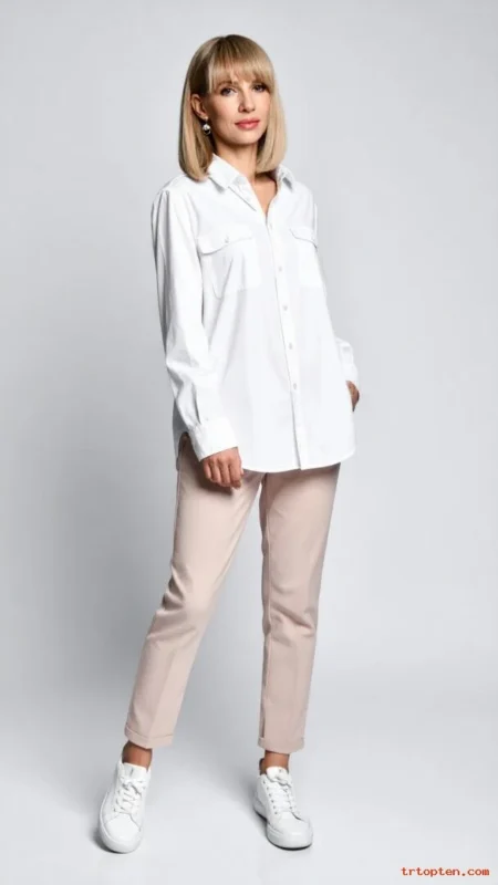 A sleek low bun looks elegant and calm. A middle part creates symmetry and a clean line. It works for workdays, events, and quick errands.