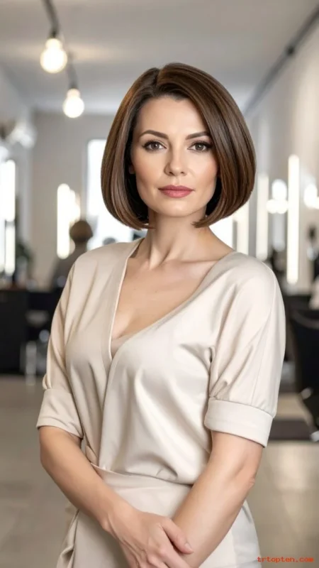 Ask for a clean angle that starts at the nape and lengthens toward the chin. Keep the layers minimal if your hair is fine. Add more interior layering if your hair is thick.