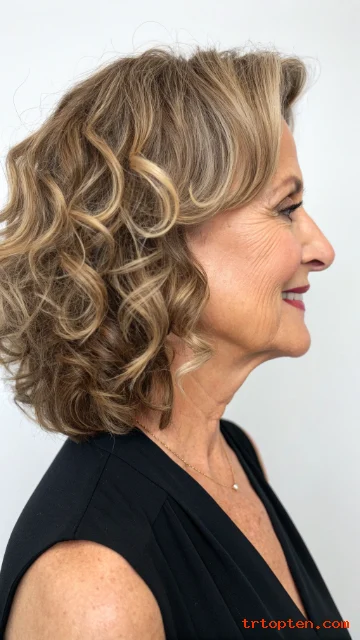 This hairstyle suits women over 60 who want to embrace texture instead of fighting it. Curls add softness and volume, which can brighten the face.