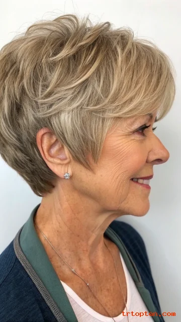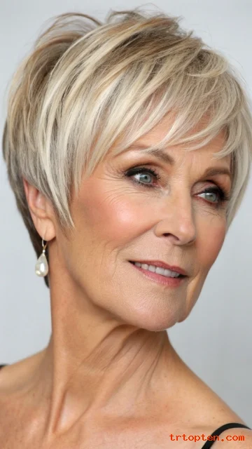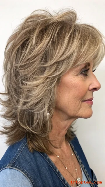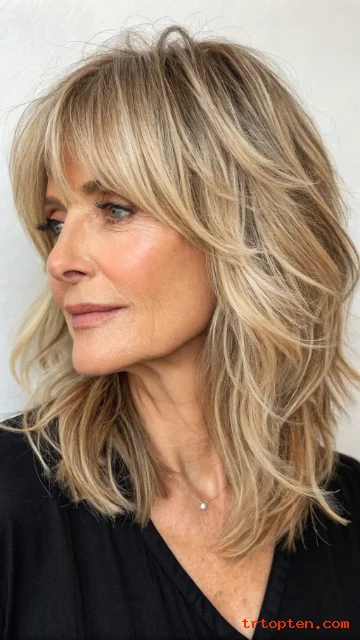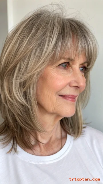 This creates a soft, feathery effect that suits many women over 60. The style adds energy and movement without feeling messy.