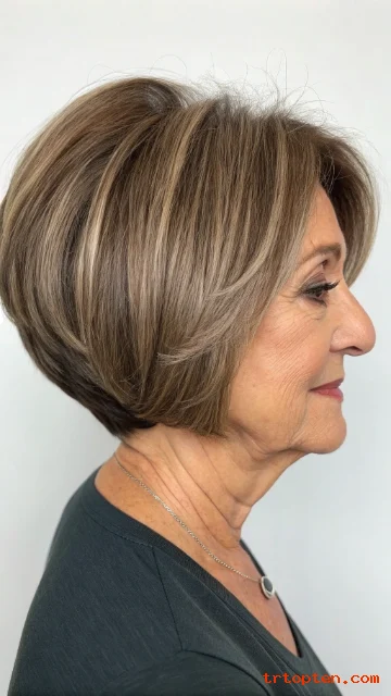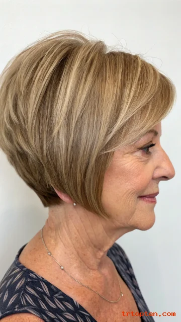 Women over 60 like this style because it lifts the profile. The stacked crown makes the head shape look round and full.