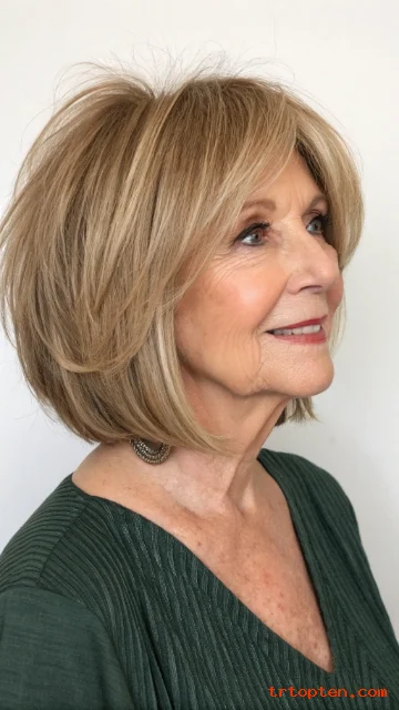 A soft layered bob gives hair movement and bounce without a lot of work. The layers frame your face and soften jawlines, which can feel very flattering after 60.