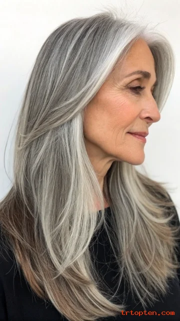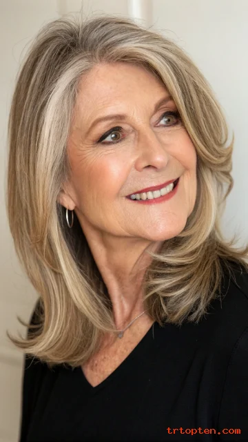 This cut works beautifully for women over 60 who still enjoy some length. It moves easily and looks fresh without needing complex styling.