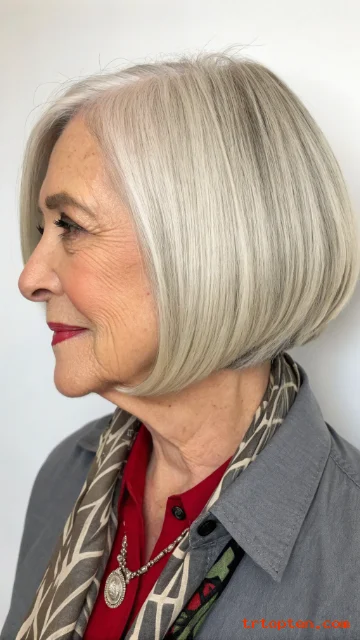 This style suits women over 60 who like structure and polish. It works especially well for straight hair or hair that responds well to a flat iron.