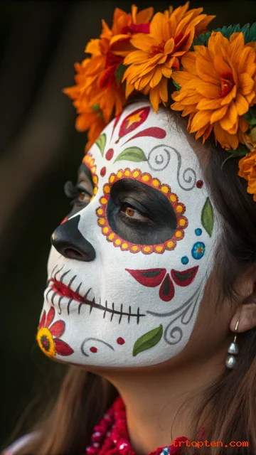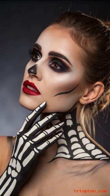 Half skull makeup lets you show off beauty and horror in one look. Split your face down the middle with a faint line, then keep one side full glam with flawless base, contour, and soft eyeshadow.