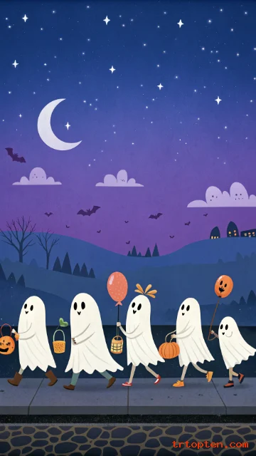 Animated-Style Ghost Parade Wallpaper