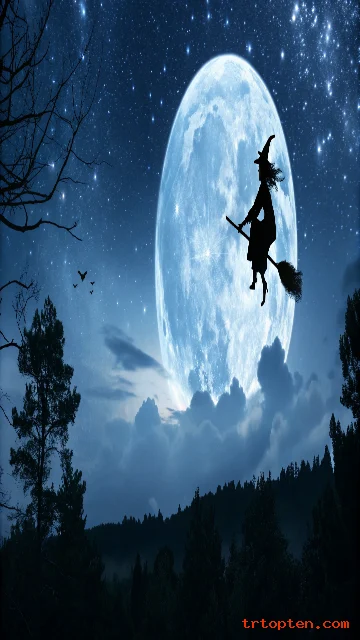 Moonlit Witch Flying Wallpaper