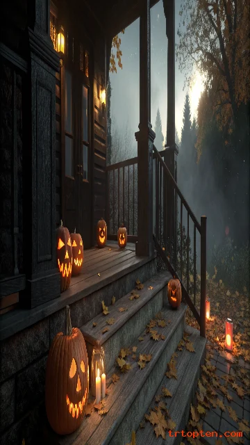 Pumpkins with carved faces create instant Halloween charm. A wallpaper with glowing jack-o’-lanterns makes your walls or screen feel warm and spooky at the same time.
