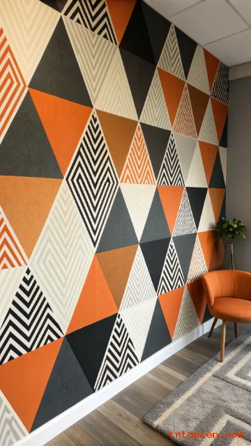This style looks great on an accent wall or TV background. The solid shapes keep the design bold but not messy.