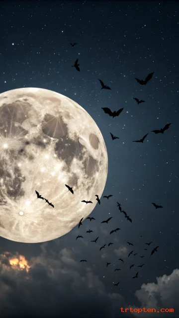 Full Moon and Bat Swarm Wallpaper
