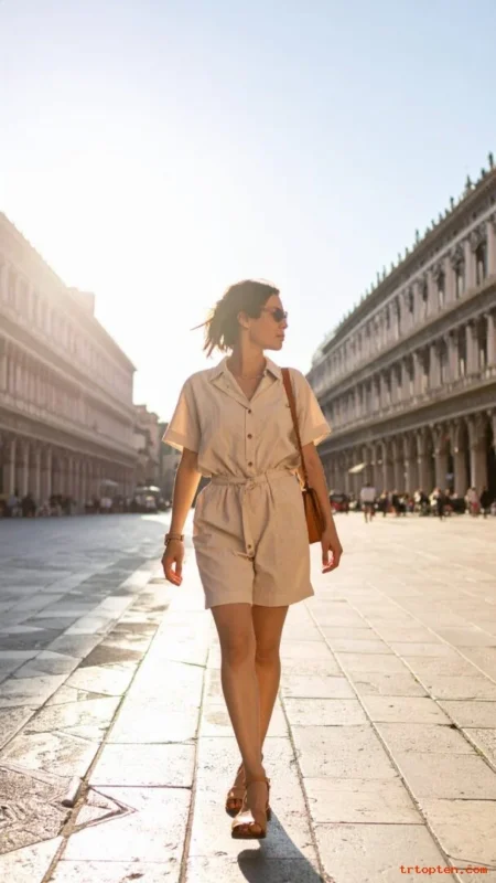 A matching linen set looks put-together without extra planning. It gives you an Italian summer outfits shortcut that works in photos every time. Choose a short-sleeve shirt with relaxed shorts or a skirt.