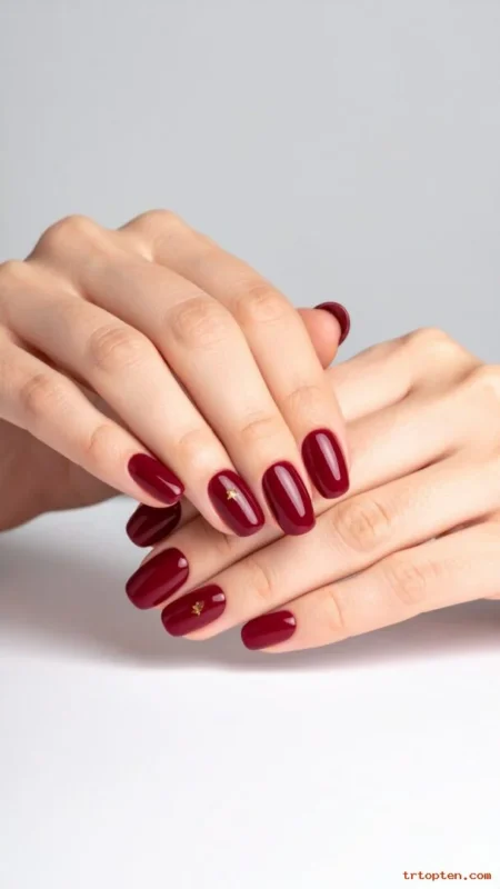 Paint nails in deep burgundy for a rich winter mood. This color looks classy and strong in January. A glossy finish makes it look fresh and clean.