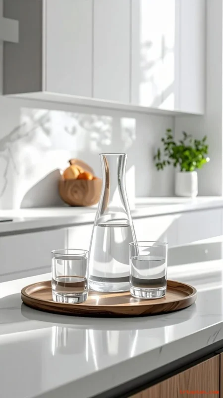 A carafe setup looks elegant and encourages hydration. It also fills awkward counter space in a useful way.