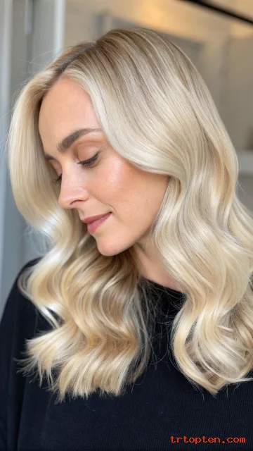 Butter blonde gives a creamy glow that looks flattering and bright. Soft curls add movement and make the color look multi-tonal. This style suits long hair and special occasions.