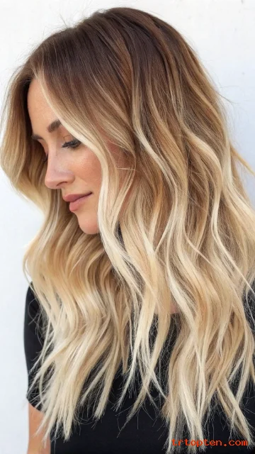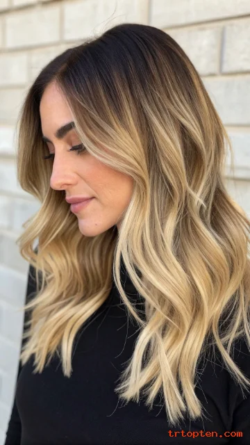 Ask for a root melt into blonde ends with a soft fade, not a hard line. Pick a blonde tone that suits your undertone, like honey or beige. Use a leave-in conditioner to keep ends hydrated.