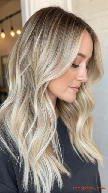 Ask for cool ash ribbons with a root melt for a soft transition. Use a blue or purple toning mask to keep the shade clean. Pair with a sleek blowout for a sharp finish.