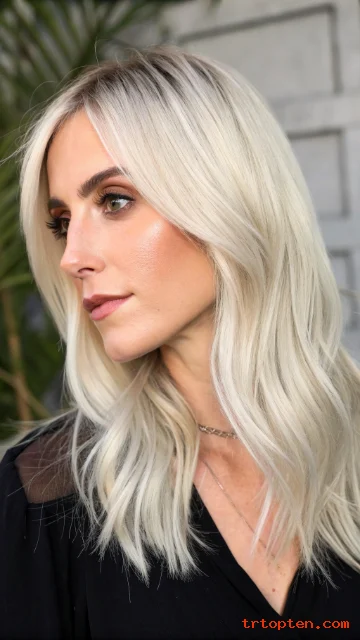 Platinum blonde makes a bold statement and looks striking on camera. A shadow root keeps the look wearable and reduces harsh regrowth. This combo also adds contrast and edge.