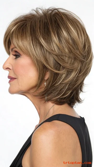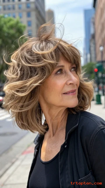 Shag-style layers add texture and lift around the crown. Bangs tie the look together and keep it modern.