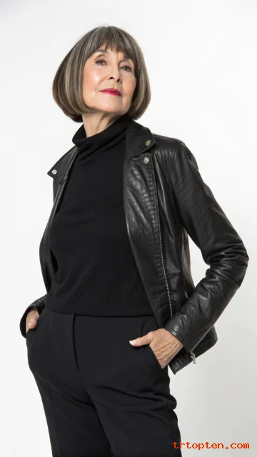 This cut makes gray hair look bright and fresh. It also pairs well with simple outfits and bold lipstick.