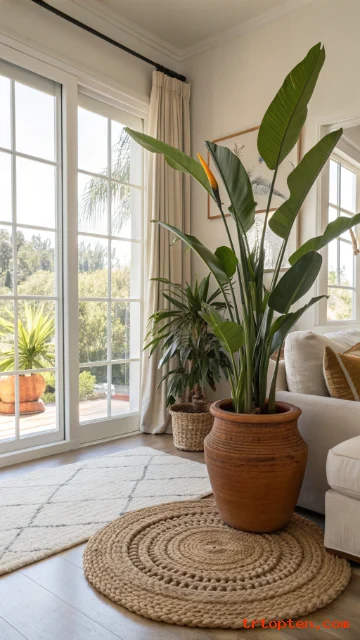 Place it beside a large window for strong indirect light. Match it with a natural fiber rug to keep the look grounded.