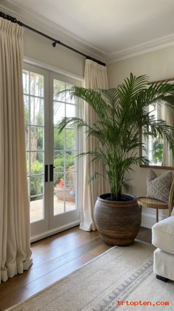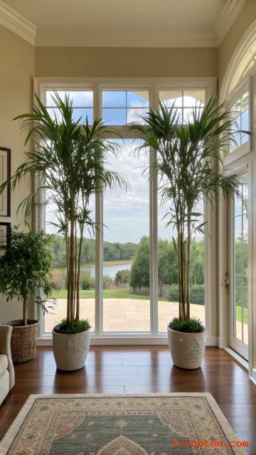 Use a bamboo palm to frame a window and soften the edges. The leaves filter light and add a relaxed feel.