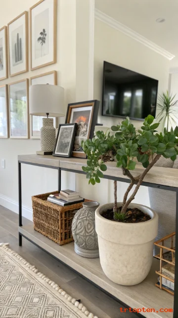 Choose a slim planter so the plant fits tight spaces and still feels intentional. Place it slightly behind the console edge to avoid blocking walkways.