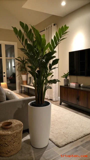 Place a ZZ plant in a low-light spot where other plants struggle. The thick stems look polished and stay green with little fuss.