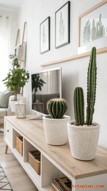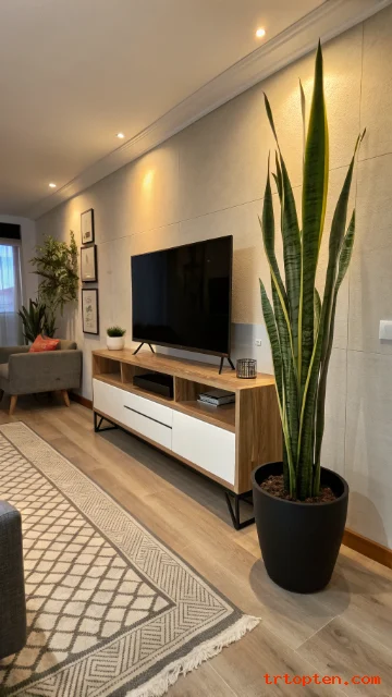 Set a snake plant beside the TV console to add height without visual clutter. Its upright leaves look neat and match modern lines.