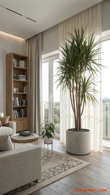 Place a dracaena to add height without taking much floor space. The narrow leaves create a clean, modern silhouette.