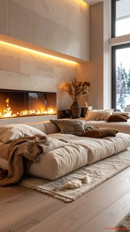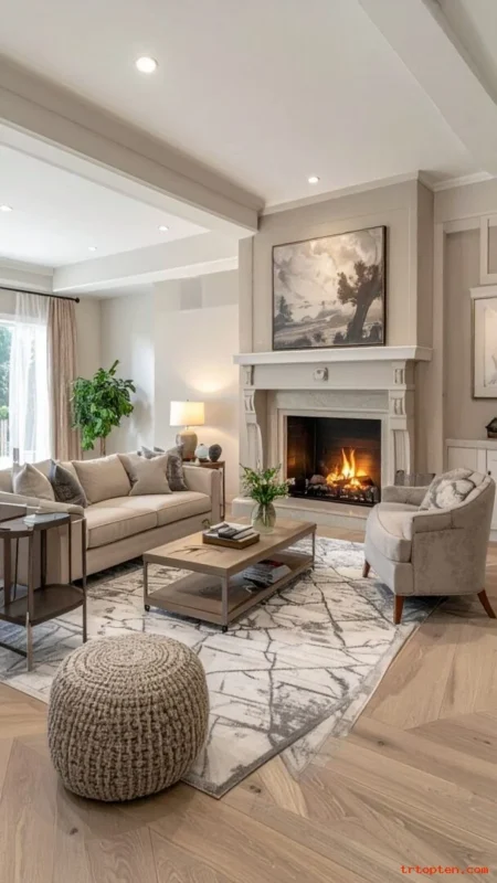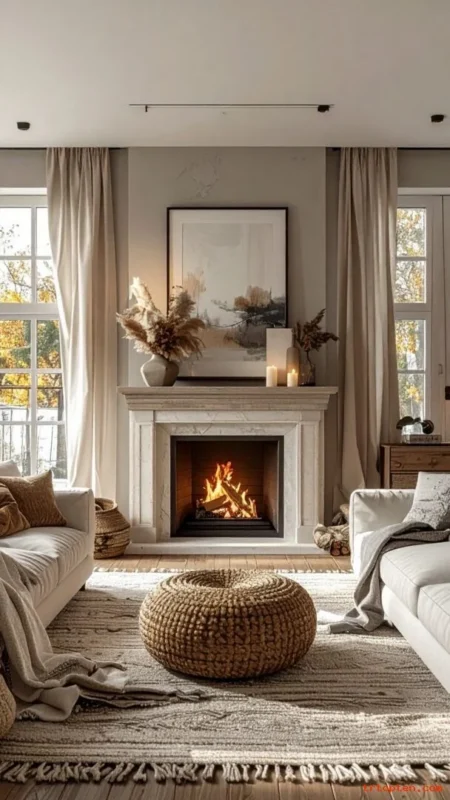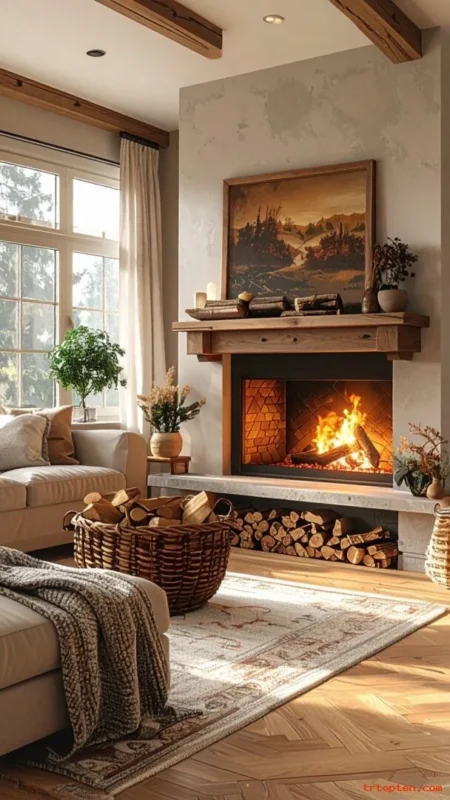 Texture makes a fireplace room feel warm even with simple colors. It helps the space feel layered and comfortable.