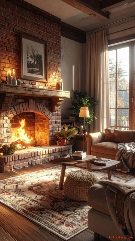 Clean the brick and keep it unpainted if you love warm red tones. Pair it with wood furniture and soft neutral fabrics. If the brick is dark, add brighter decor to lift the room. Use warm lighting to enhance the brick color.