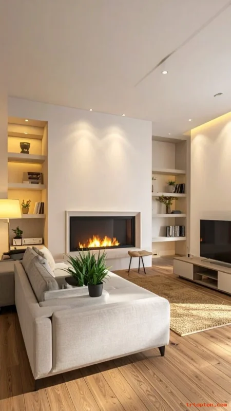 These living room with fireplace decorating ideas help you shape a space that feels cozy, clean, and functional.