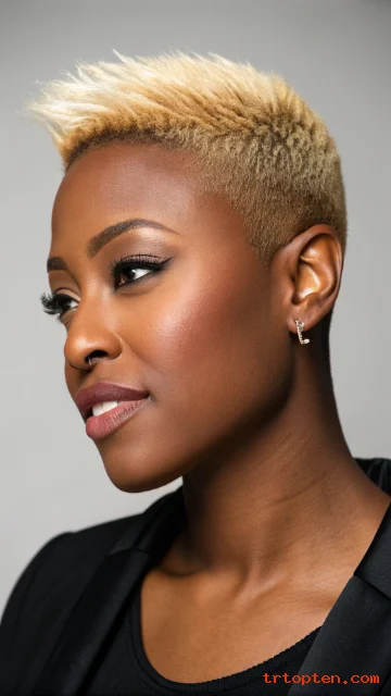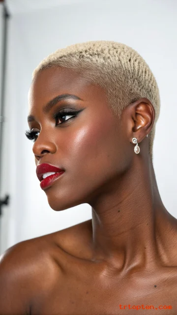 A buzz cut can look feminine and strong at the same time. Soft waves add movement and keep the cut from looking flat. This style highlights cheekbones and eyes in a striking way.