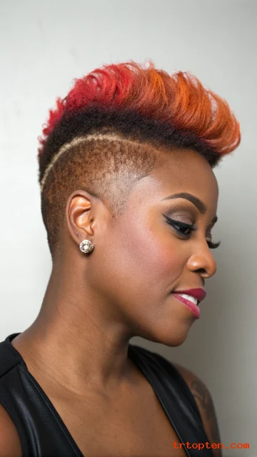 Copper tones warm up the face and look rich on short natural hair. A tapered cut keeps the color focused and clean around the edges. This look feels bright without needing long hair.