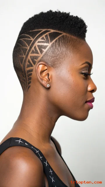 Hair designs add personality and make a low cut feel unique. Lines, curves, and patterns can highlight your head shape. This look turns simple hair into wearable art.