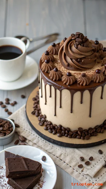 Use mocha tones with a glossy chocolate drip. Add fondant coffee beans and a small cup topper. A dusting of cocoa adds a real café vibe.