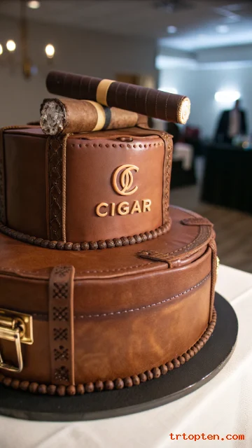 Use brown tones with a leather texture effect on fondant. Add a cigar topper and a small gold monogram. This theme looks bold and mature.