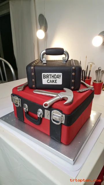 Shape the cake like a toolbox or add fondant tool toppers. Use red, black, and silver for a realistic look. Add a name plate like a tool brand label.