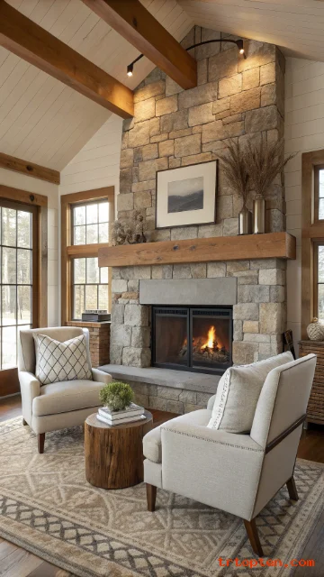 Style the hearth with understated elements. A stack of birch logs or a single large candle looks beautiful. Add comfortable seating arranged for conversation. This area naturally becomes a gathering spot.