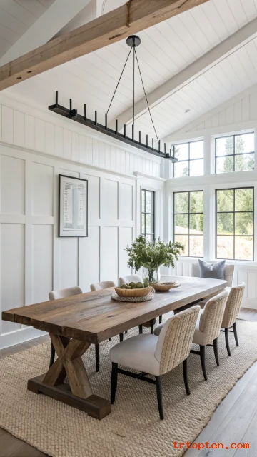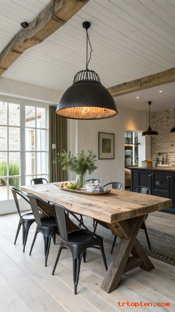 Mix these rustic elements with modern finishes. Pair a reclaimed wood table with sleek metal chairs. This combination defines the modern cottage aesthetic. Your space will feel grounded and stylish.