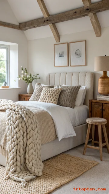 Keep the bedroom palette soft and neutral. This allows the textures to shine without visual noise. Add small wood side tables and a vintage rug. The room becomes a serene and cozy sanctuary.
