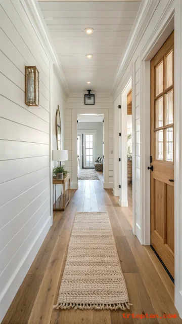 Choose wide-plank hardwood floors for a base. Light oak or whitewashed woods make spaces feel airy. The natural grain adds texture and warmth underfoot. Floors are a foundational element of the style.