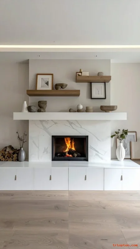 These modern fireplace mantel decorating ideas can elevate your space with clean lines, balanced shapes, and calm color choices.