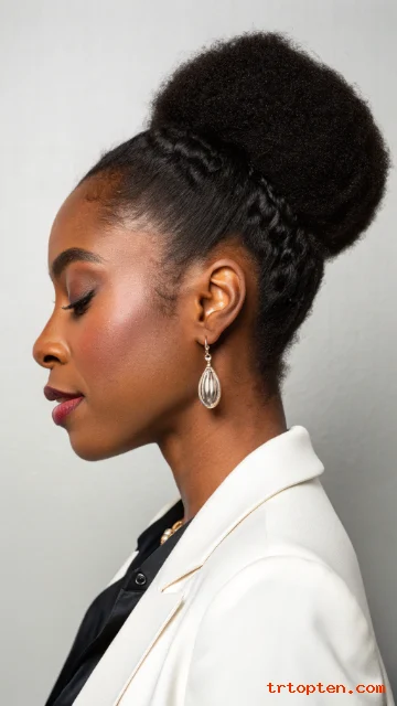 A low bun looks professional and protects your ends. The textured base keeps it natural and not too tight.